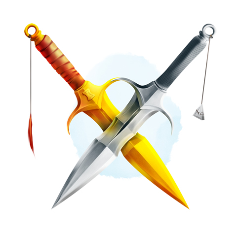 ◆ Aurum (Plata y oro): Espada corta de plata de1d8 de daño (mediano). Con1 acción de concentración puedes activar Aurum para que ilumine8 espacioso de luz brillante centrado en ella.◆ Argentum (Plata y mithril): Espada corta de plata de1d8 de daño (mediano) También tiene las características de un arma de mithril. Con1 acción de concentración puedes activar Argentum para que genere oscuridad en8 espacioso centrado en ella.◆ Con1 acción de ataque puedes chocar Aurum y Argentun generando un estallido de luz en un cono de 6 espacios queCiega bajo la condición de Ceguera por 1d4 rondas, fortaleza20 niega.◆ Cuando utilizas el talento Rechazar con Aurum la criatura esCegada bajo la condición de Ceguera, fortaleza20 niega.