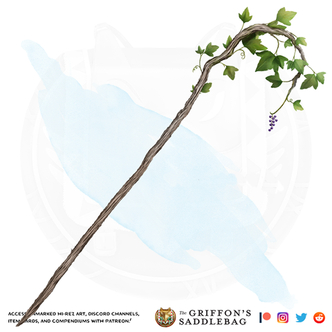 Puedes usar el bastón para conjurar Enredar, Animar Plantas y Pared de espinas. Cuando lo haces una uva se seca y cae del bastón. Si el bastón no tiene uvas no puedes usarlo para conjurar.